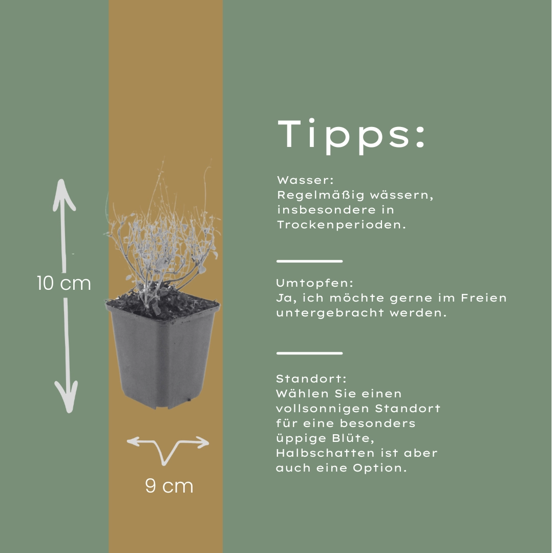 Die Calamintha nepeta nepeta verleiht deinem Garten eine mediterrane Note mit ihren feinen, graugrünen Blättern und lila-blauen Blüten. Pflegeleicht und trockenheitsresistent, ist sie perfekt für sonnige Beete und Steingärten. Vorteile: