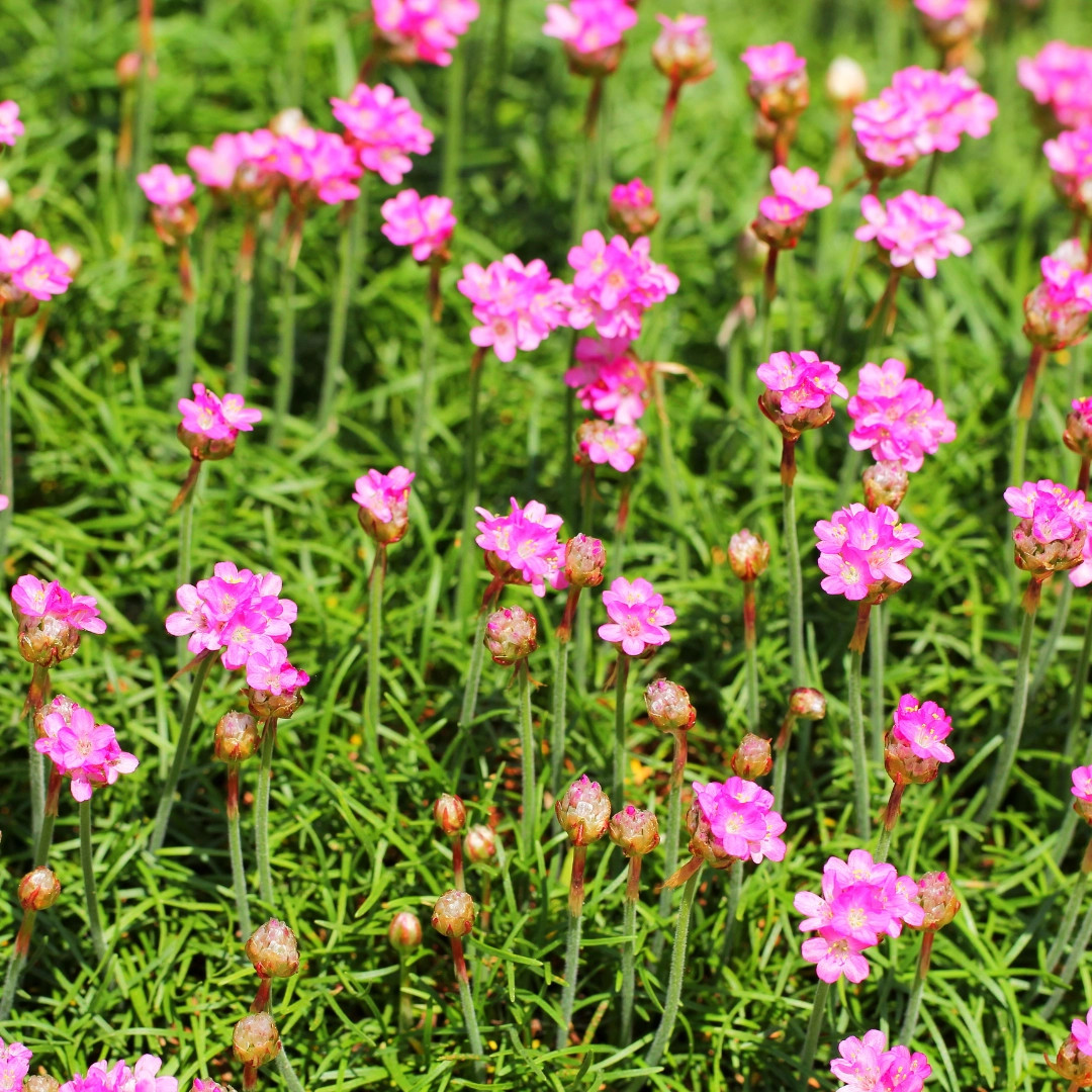 Die Armeria maritima 'Splendens' ist eine kompakte Staude mit dunkelgrünem, grasartigem Laub und auffälligen, kugelförmigen Blütenrispen in leuchtendem Rosa. Sie verschönert Deinen Garten im späten Frühling und während des Sommers und bietet durch ihre Form sofort Struktur und Farbakzente. Vorteile: