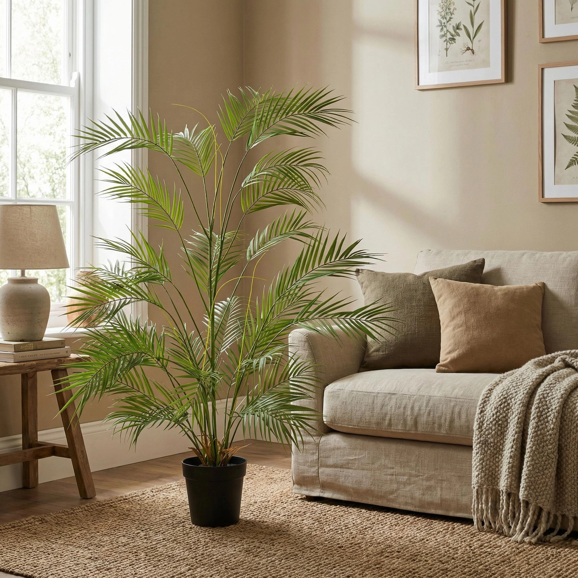 Die künstliche Areca bringt frisches, tropisches Ambiente in Deine Räume und überzeugt durch schlanke Stiele sowie volle, elegante Blätter. Ideal als dekorativer Blickfang im Wohn- oder Arbeitsbereich. Vorteile: