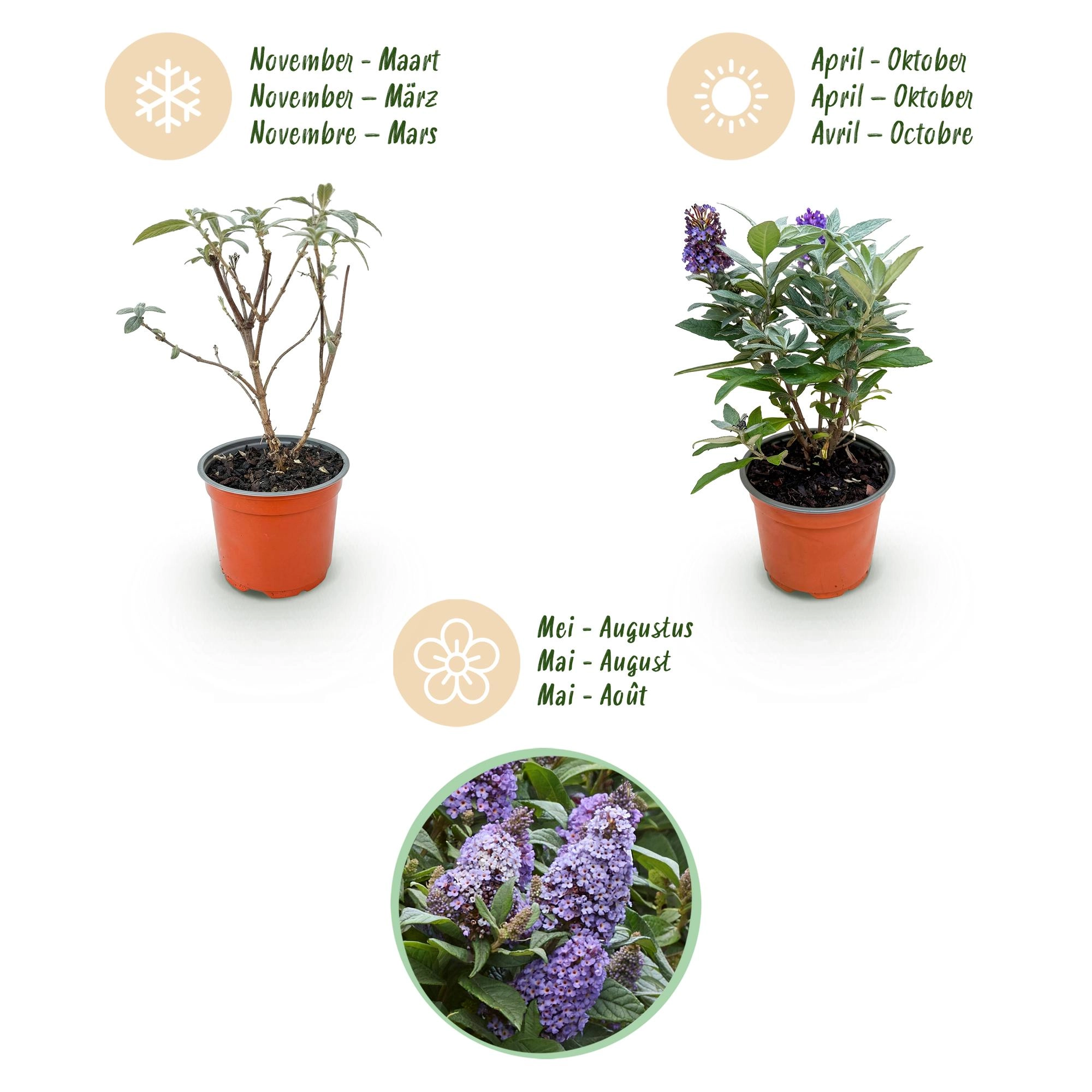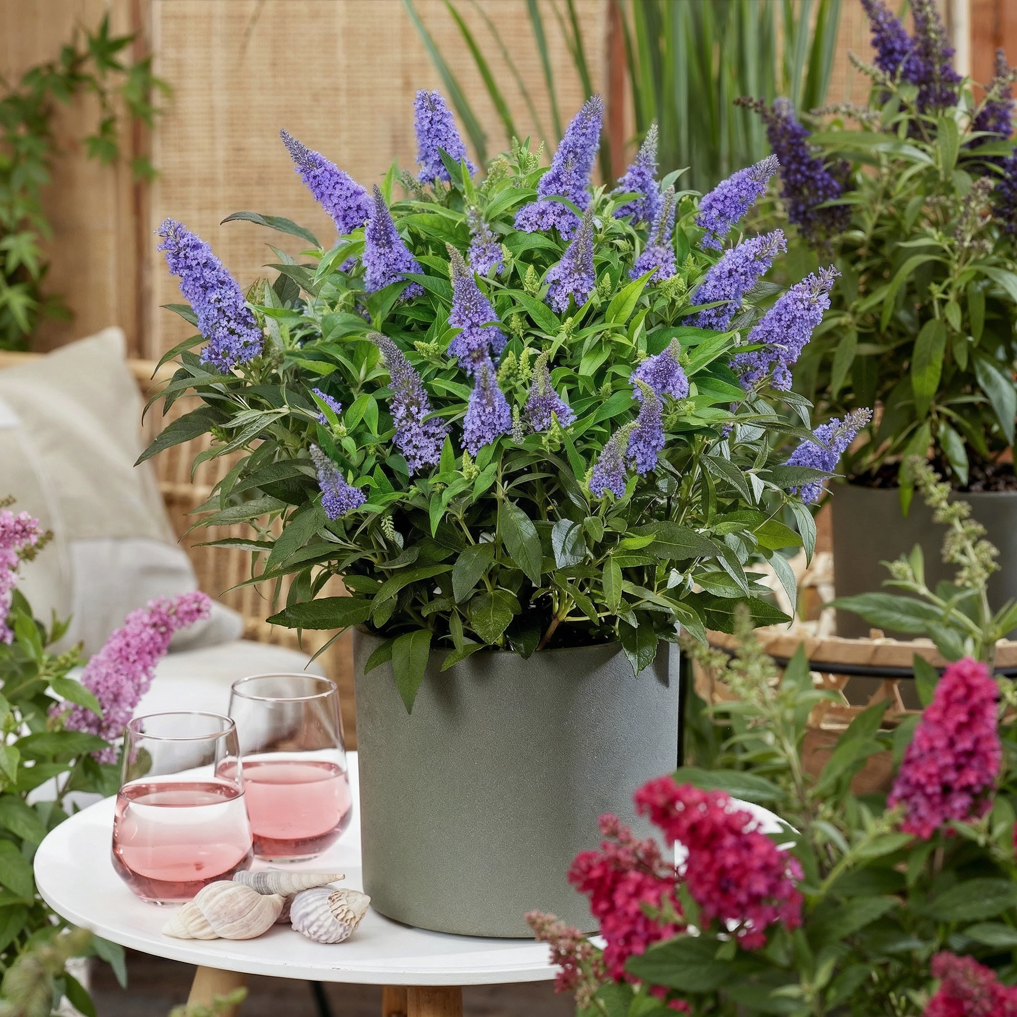 Entdecke die Buddleja Davidii "Butterfly Candy Little Lila" – eine kompakte, dicht wachsende Pflanze mit auffälligen lilafarbenen Blütenständen. Sie bringt von Sommer bis frühem Herbst kräftige Farbe in Beet, Balkon oder auf die Terrasse und ist zugleich ein Magnet für Schmetterlinge, Bienen und andere Bestäuber. Vorteile:
