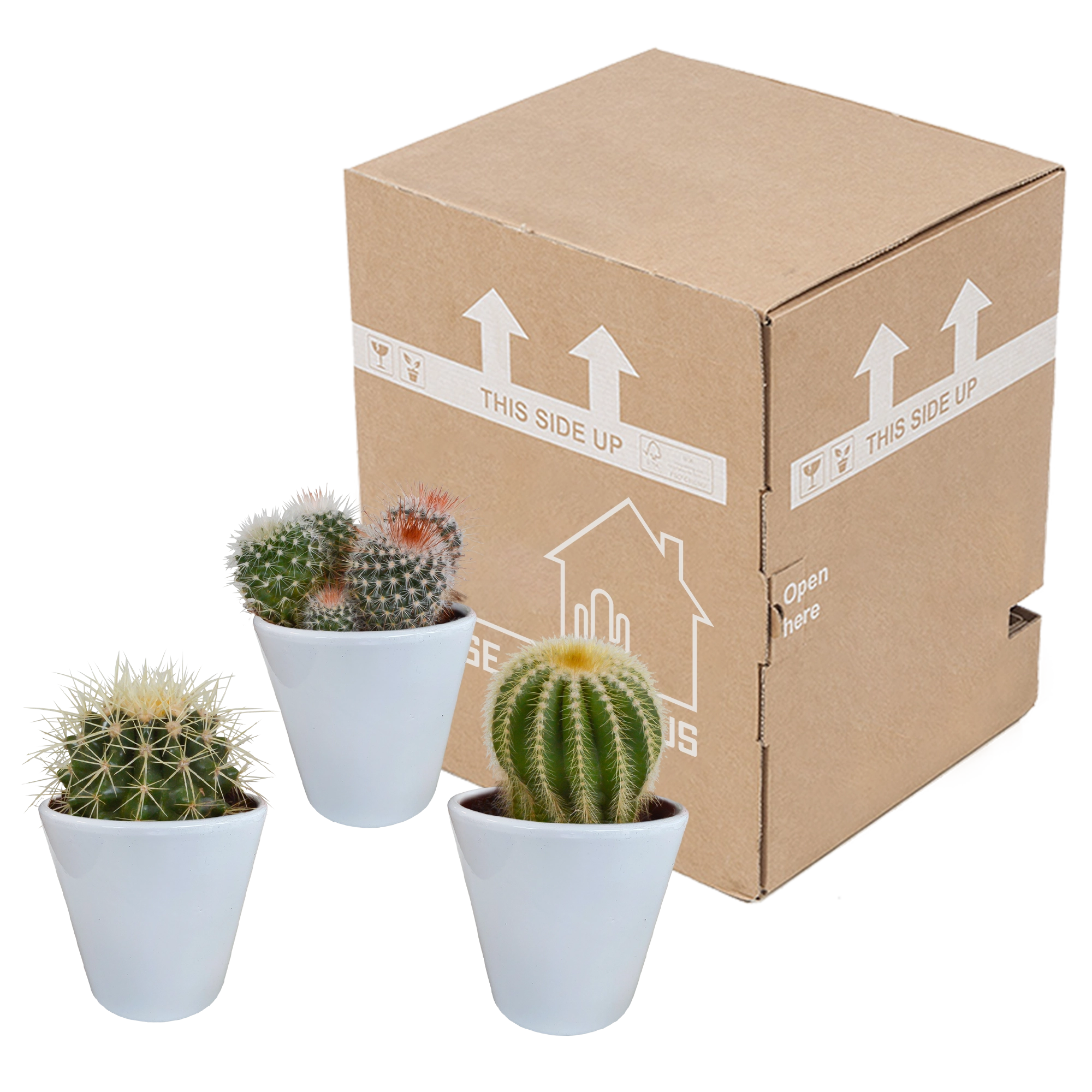 Entdecke die Vielfalt dieser Kakteen Mischung, die aus drei einzigartigen, kugelförmigen Kakteen besteht. Sie sind in verschiedenen Farben, Höhen und Formen erhältlich und wurden direkt vom Züchter bezogen – höchste Qualität ist garantiert! Vorteile: