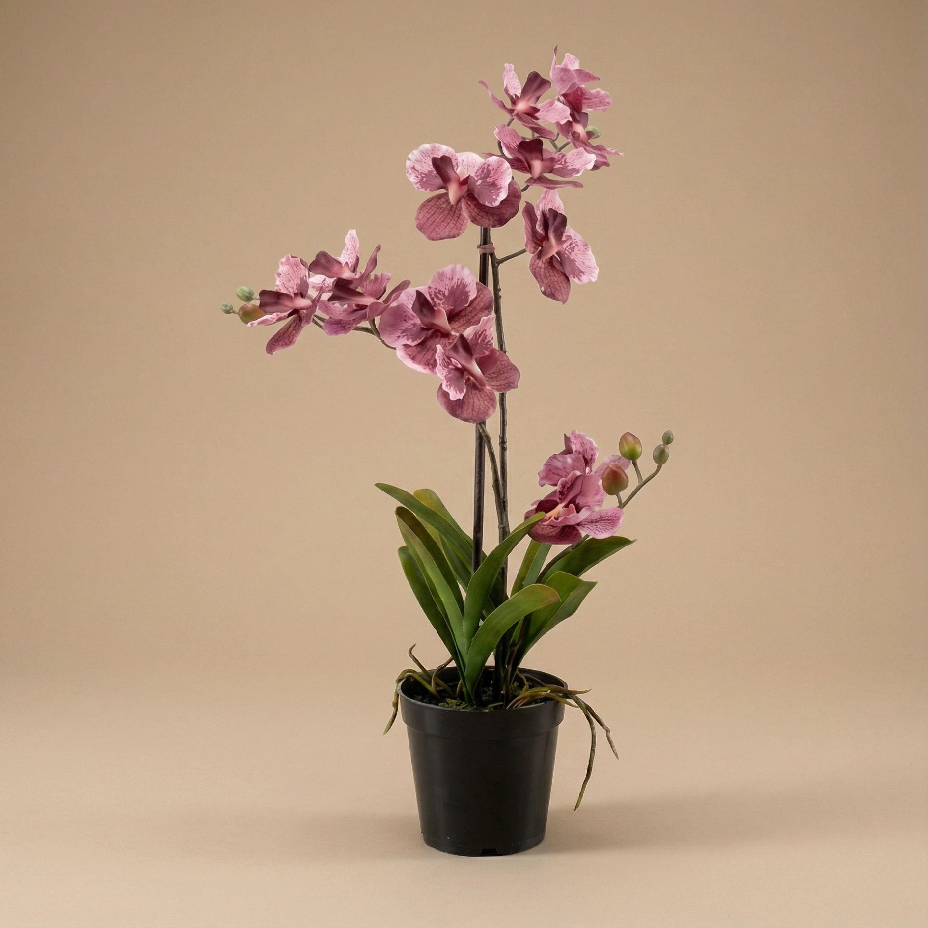 Diese elegante Vanda Orchidee Kunstpflanze in warmem altrosa bringt Glanz in jedes Zuhause. Mit ihren realistischen Blumen und der feinen Verarbeitung ist sie die perfekte, pflegeleichte Deko für jeden Raum. Vorteile: