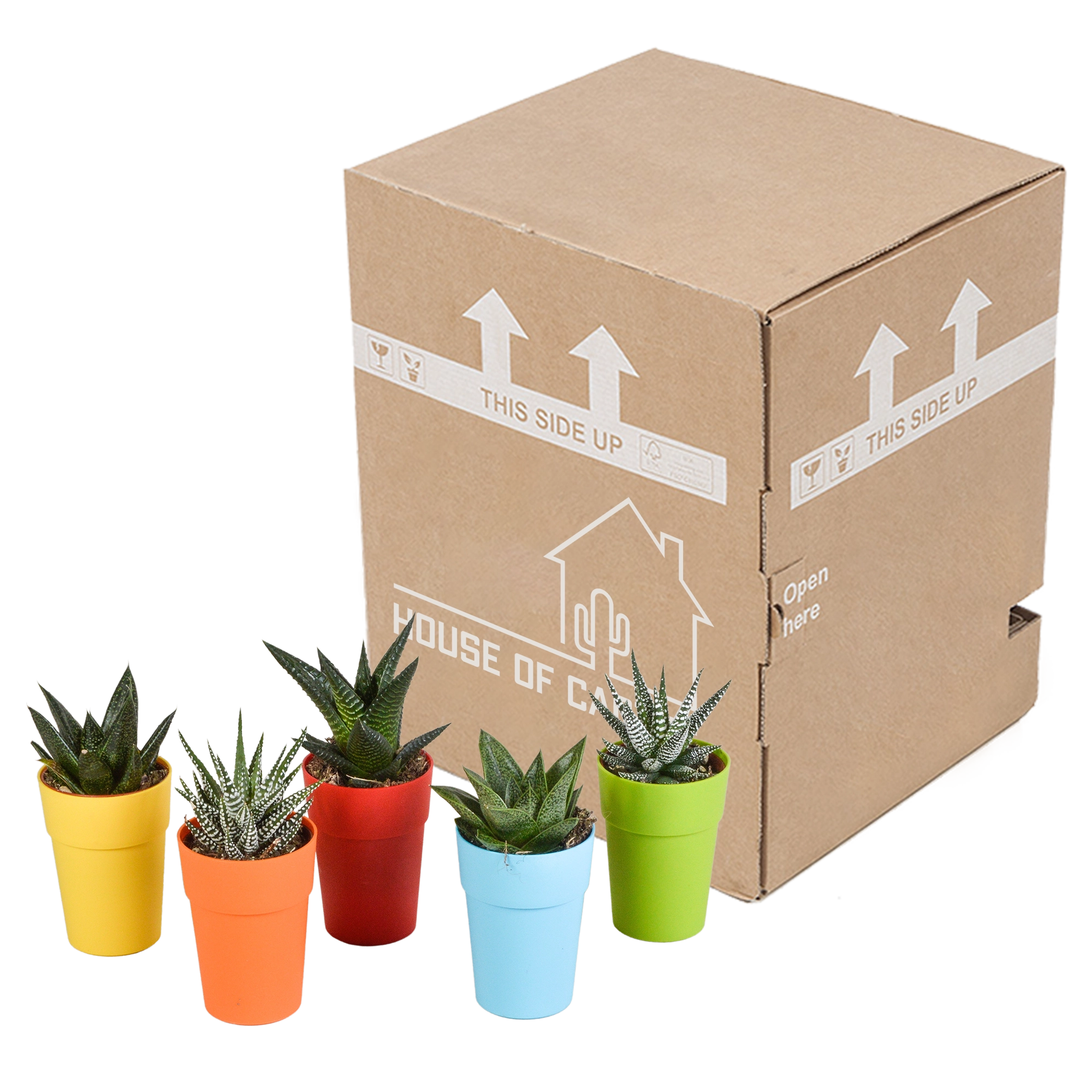 Gasteria/Haworthia Mischung – 5er Topper im farbigen Topf