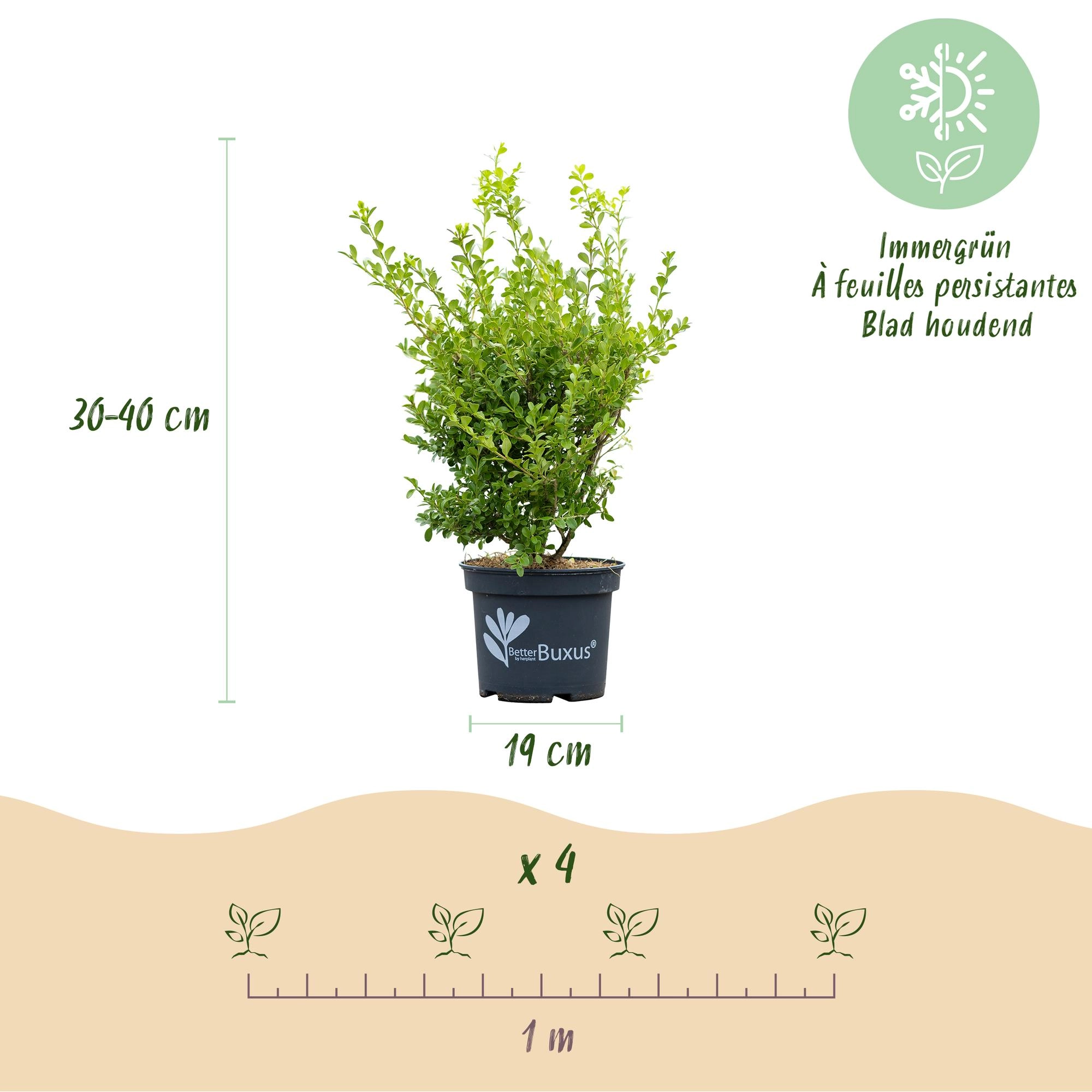 BetterBuxus wurde speziell als ideale Heckenpflanze entwickelt und eignet sich ebenso hervorragend zum Gestalten von Kugeln und Pyramiden. Die Pflanze bleibt immergrün und bringt das ganze Jahr über eine gepflegte, grüne Struktur in deinen Außenbereich. Dank Resistenz gegenüber der Buxuskrankheit und Toleranz gegenüber dem Buxusmot kannst du beruhigt formale und verspielte Formen gestalten. Vorteile: