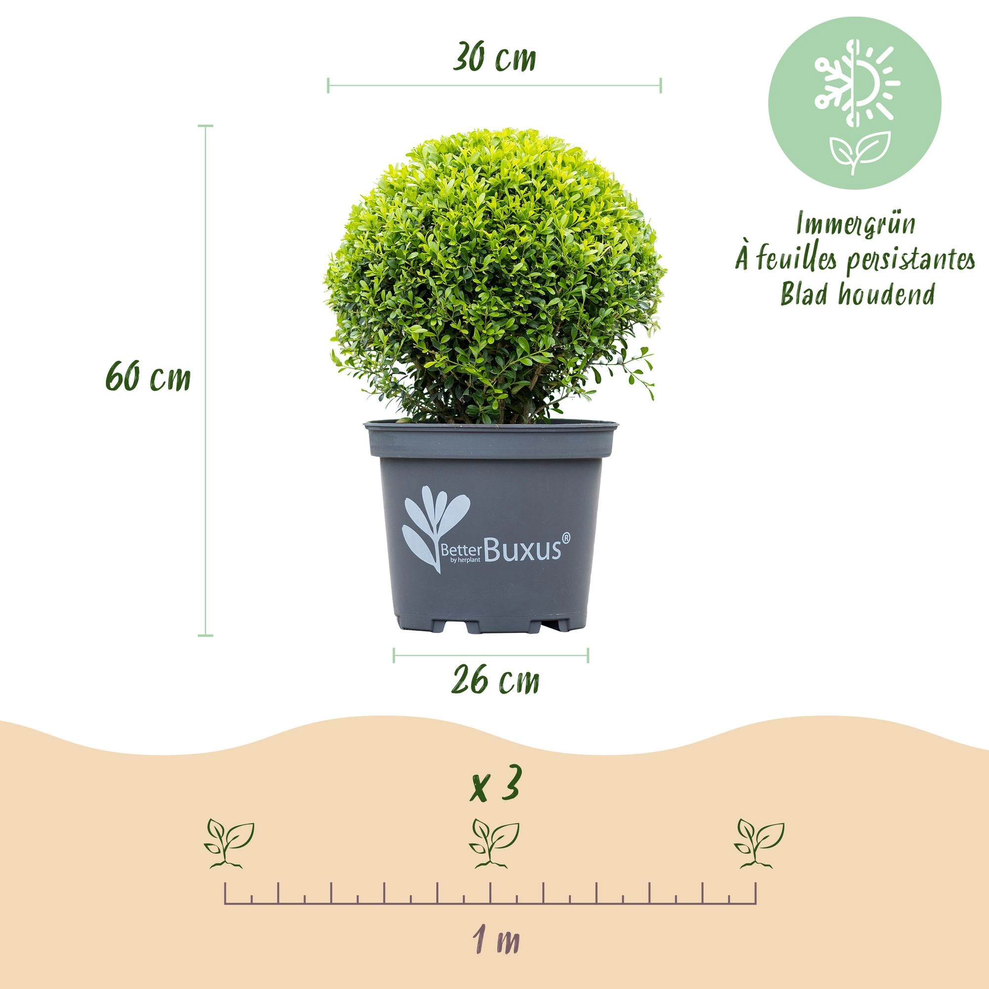 BetterBuxus ist eine innovative Buxusvarietät, die das ganze Jahr über grün bleibt und sich ideal für formale Hecken sowie für dekorative Kugeln und Pyramiden eignet. Dank gezielter Züchtung ist der BetterBuxus resistent gegen den bekannten Buxusmehltau und zeigt eine Toleranz gegenüber dem Buxusmot, wodurch gesundes Wachstum und langlebige Formen unterstützt werden. Vorteile: