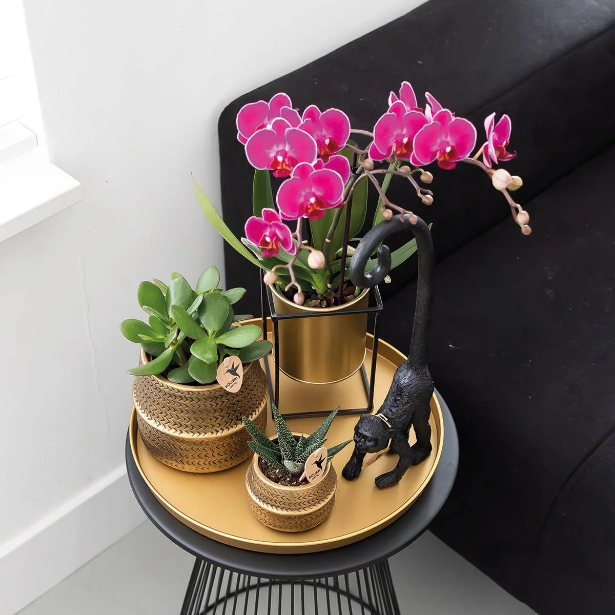 Entdecke die Schönheit der lila Phalaenopsis-Orchideen mit unserem COMBI DEAL! Diese eleganten Pflanzen bringen Farbe und Wärme in dein Zuhause. Ideal für einen bunten Topf, strahlen die Orchideen eine besondere Eleganz aus.