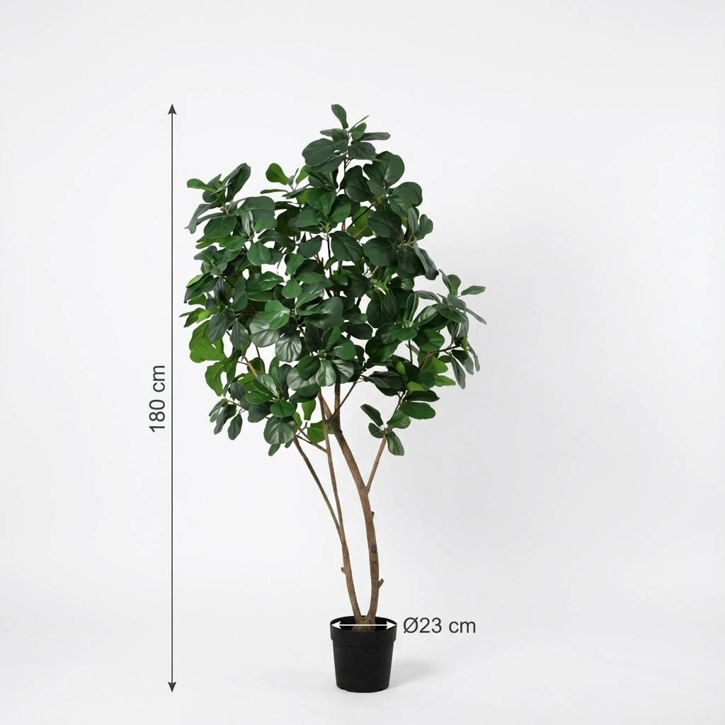 Der künstliche Ficus Lyrata Baum bringt eine grüne und luxuriöse Atmosphäre in Dein Zuhause oder Büro. Mit seinem stabilen Stamm und den großen, charakteristischen Blättern ist dieser Baum ein echter Hingucker, der wunderbar in jeden Raum passt. Vorteile: