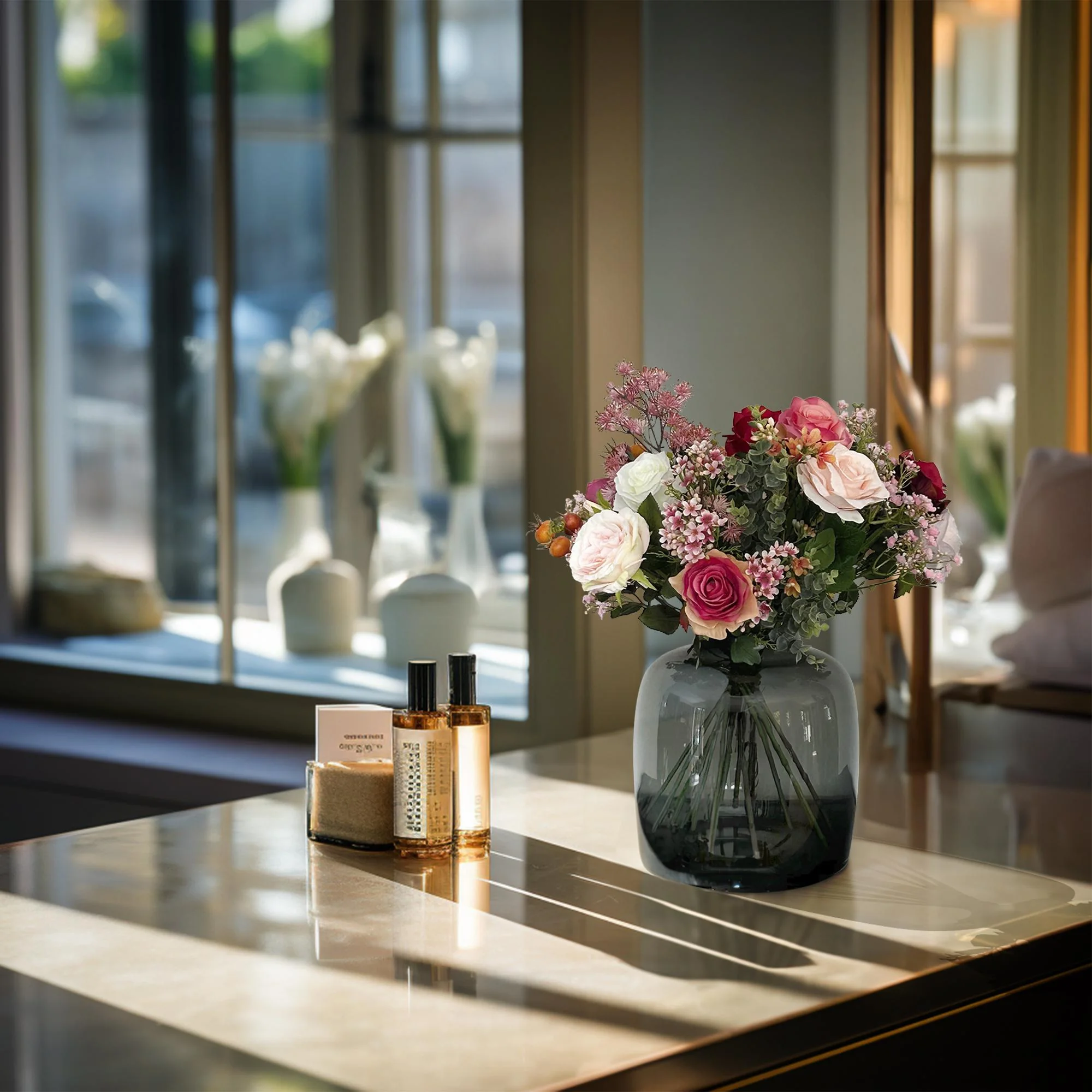Kunstblumenstrauß "Flame Roses" – Farbenfrohe Eleganz für dein Zuhause