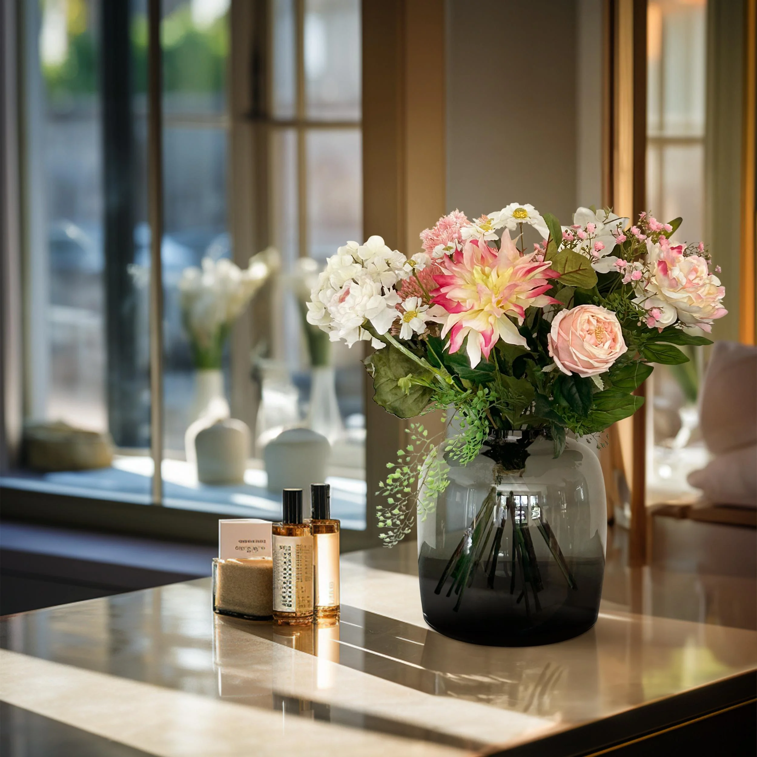 ![]() | Gestalte dein Zuhause mit unserem Kunstblumenstrauß "Pastel Lover" in sanften Farbtönen. Diese romantische Mischung aus zartem Rosa, Creme und einem Hauch von Grün bringt die natürliche Schönheit echtem Blumen in dein Zuhause, ohne Pflegeaufwand. Vorteile: