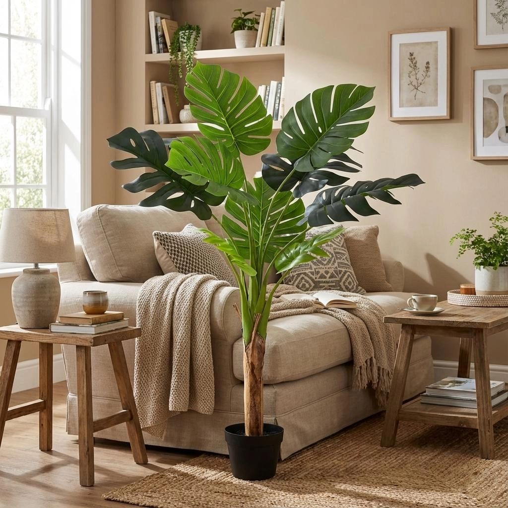 - Standort auswählen: Wähle einen Platz, an dem eine echte Pflanze stehen könnte – so wirkt die Kunstpflanze natürlicher.