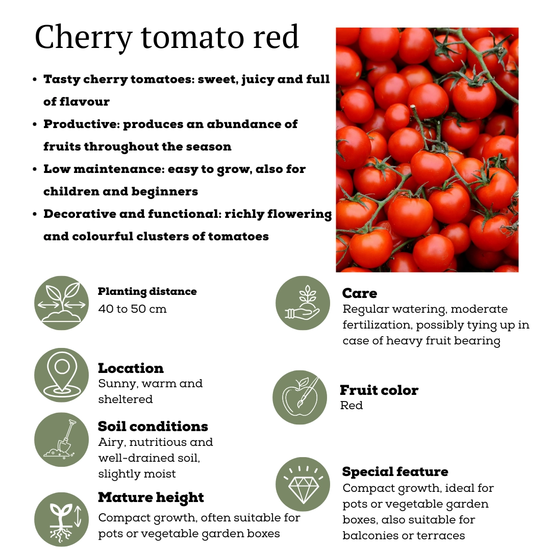 Erlebe die Freude am eigenen Anbau und Ernten mit unserer kompakten Pflückgemüse-Cherrytomate. Du bekommst eine ertragreiche Pflanze, die zahlreiche kleine, süße Tomaten liefert – perfekt zum Naschen direkt von der Pflanze. Vorteile: