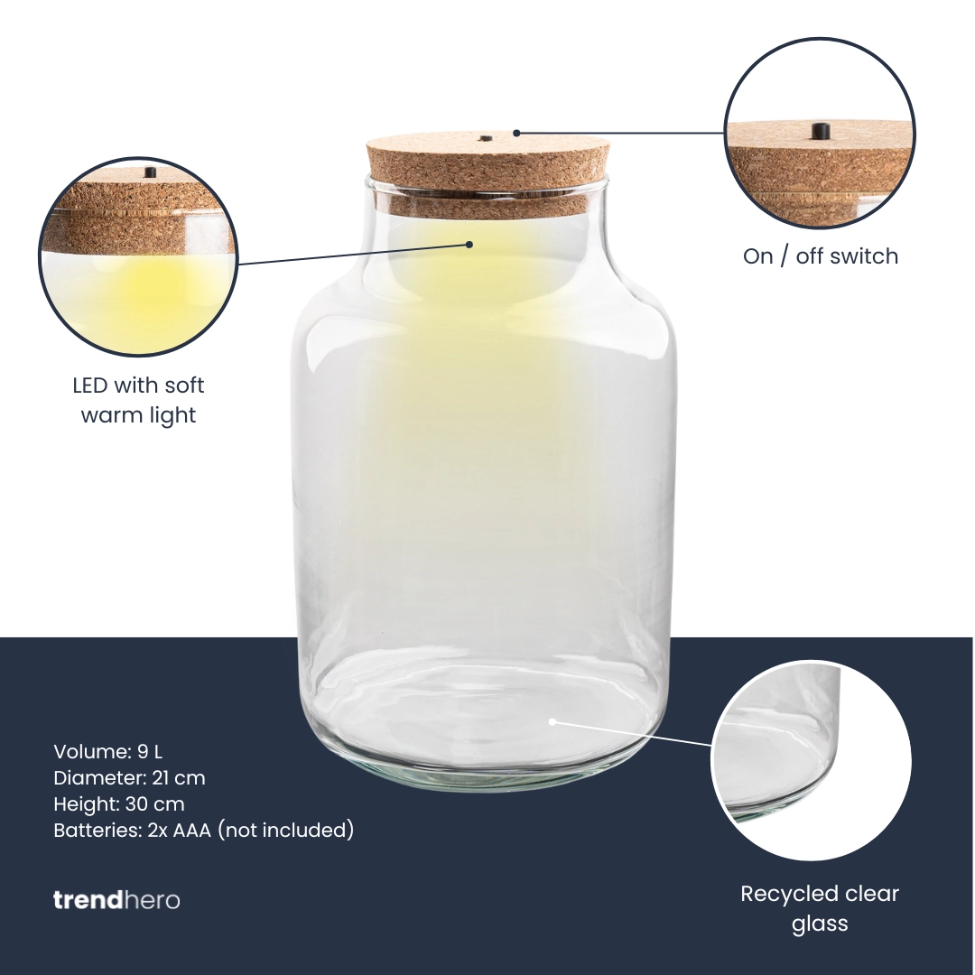 ![]() | Die Terrariumflasche Milky ist perfekt geeignet, um dein eigenes kleines Pflanzenparadies zu gestalten. Mit ihrem eleganten Design und der natürlichen Kurk-Abdeckung ist sie das ideale Zuhause für deine Pflanzen. Vorteile: